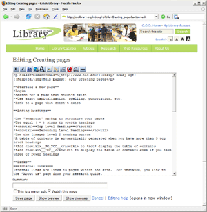 Screen shot of the Library wiki page editing screen.